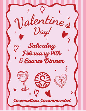 Join us for a 5-course Valentine’s Day prix fixe dinner — $150 per couple, built for sharing, sipping, and staying a little longer than planned.